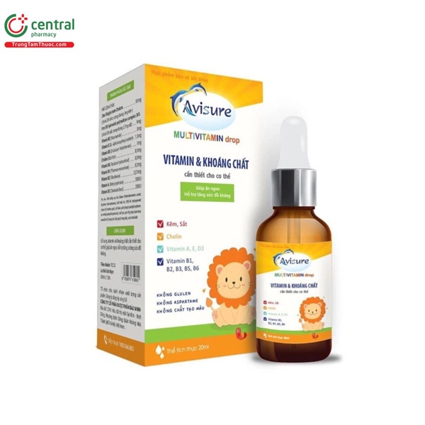 13 Ưu điểm Avisure Multivitamin Drop giúp bổ sung đầy đủ các loại vitamin và khoáng chất cần thiết cho sự phát triển của bé và sức khỏe của người lớn. Sản phẩm có thể sử dụng được cho trẻ từ 6 tháng tuổi và người lớn. Avisure Multivitamin Drop dạng nhỏ giọt, hương dâu dễ dùng, với trẻ nhỏ có thể trộn cùng cháo, sữa cho trẻ uống. Mỗi chai đều có 1 ống hút chia liều giúp bạn có thể phân chia liều một cách chính xác nhất. 14 Nhược điểm Avisure Multivitamin Drop không có hiệu quả thay thế thuốc chữa bệnh. Hiệu quả của Avisure Multivitamin Drop tùy thuộc vào thể trạng của mỗi người.